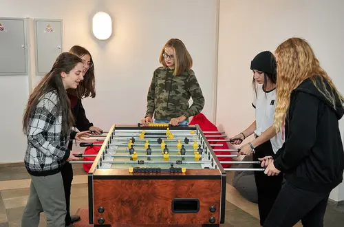 Ausgebildete Sozialpädagoginnen und Sozialpädagogen stehen als Ansprechpersonen zur Verfügung und begleiten die Jugendlichen in der schulfreien Zeit.