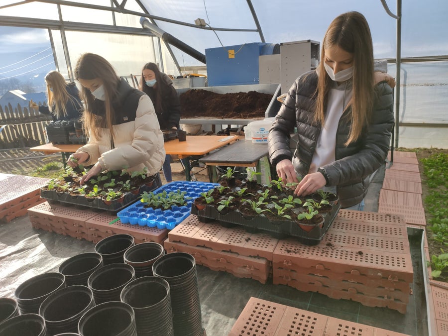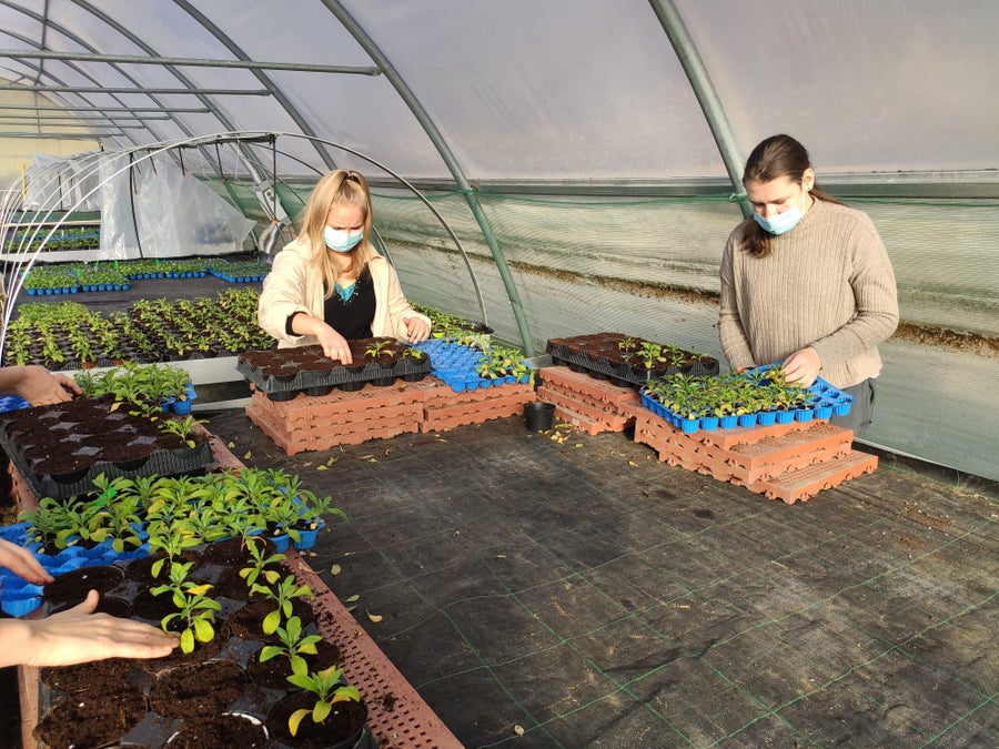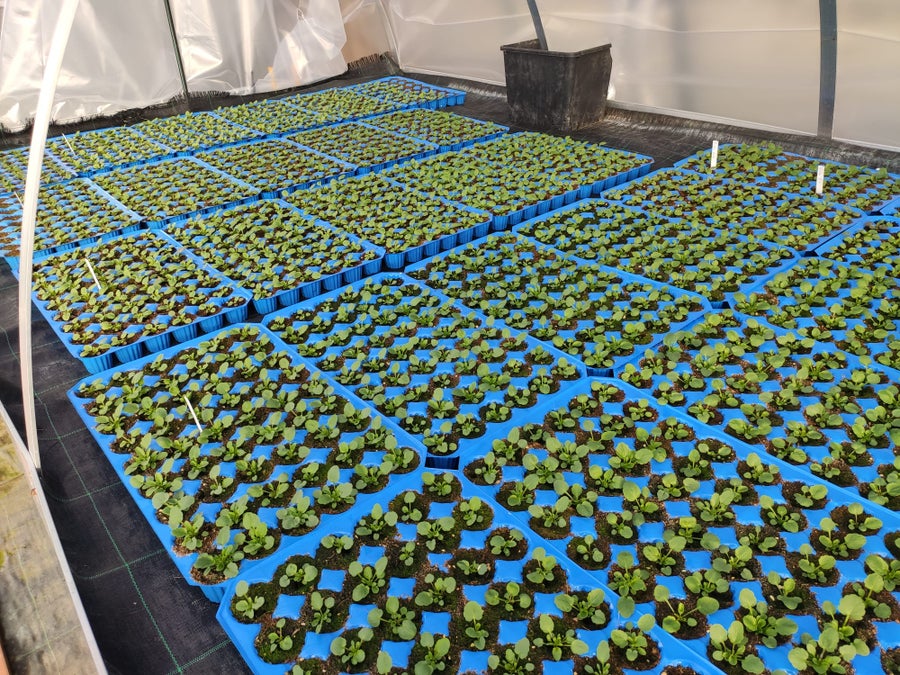Gänseblümchen, Vergissmeinnicht, Goldlack und Stiefmütterchen werden im Praxisunterricht getopft und für den Verkauf im Schulladen gehegt und gepflegt. Zu haben sind sie dann ab März!