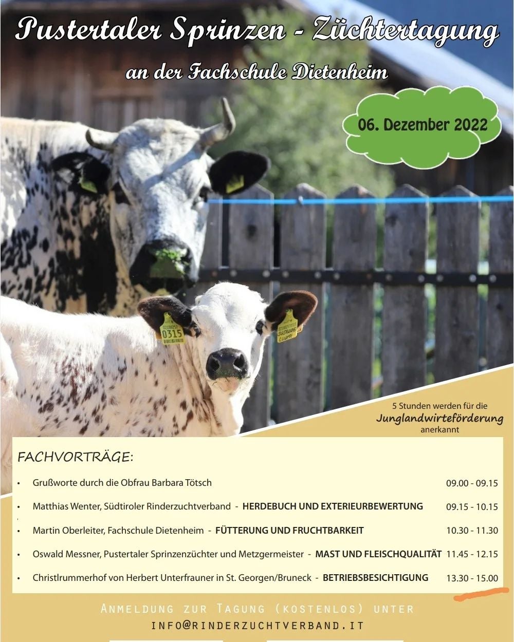 Um Anmeldung beim Rinderzuchtverband wird gebeten. Veranstaltung ist kostenlos.