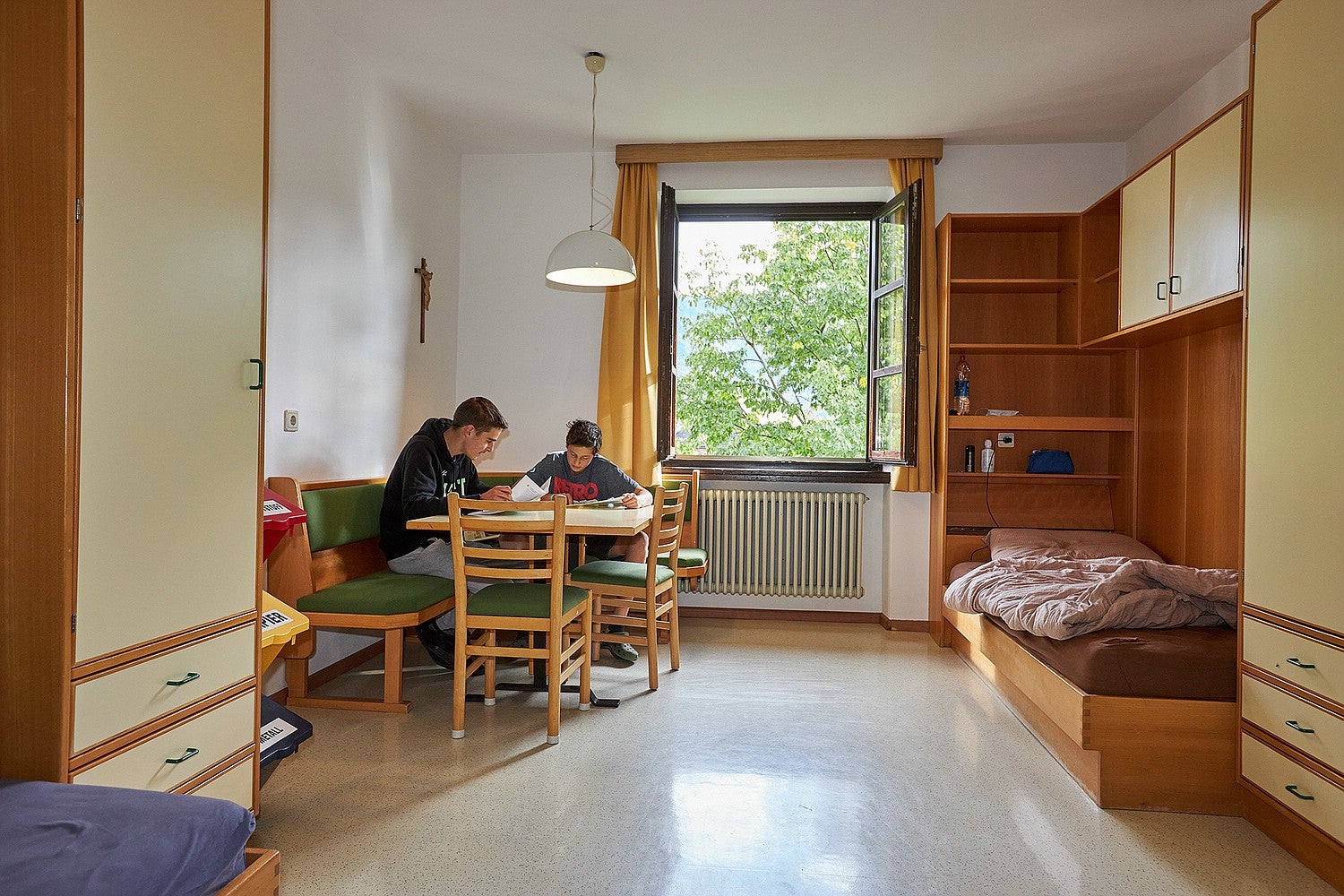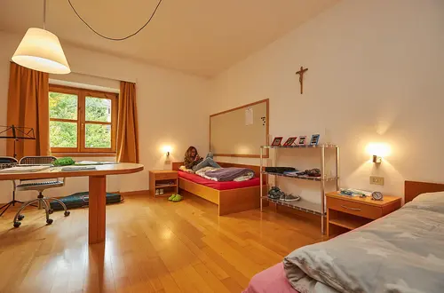 Anche le stanze del convitto maschile sono spaziose e accoglienti. Sono a disposizione camere a tre e quattro letti. Disposte su tre piani possono essere ospitati 67 alunni, studenti e apprendisti. Ogni piano dispone di un grande bagno comune dotato di lavandini, WC e docce a sufficienza.